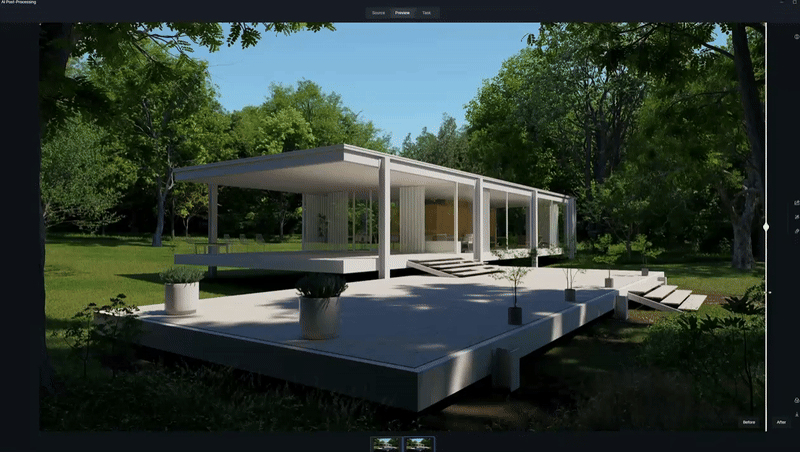 AI Enhancerを使用すると、鮮明さと鮮明さが瞬時に向上します D5 レンダリング