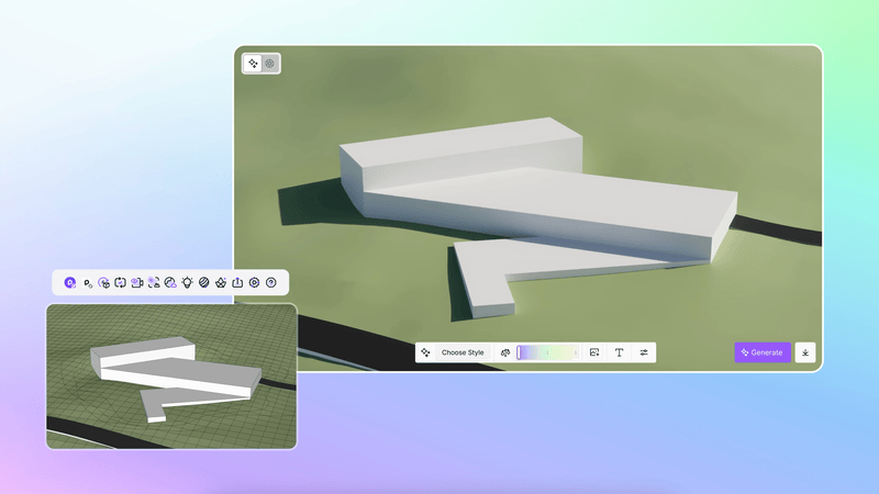 SketchUp の変更をリアルタイムで視覚化し、AI モードを使用して新しい設計スキームを生成することで、設計上の決定を迅速に行えます。