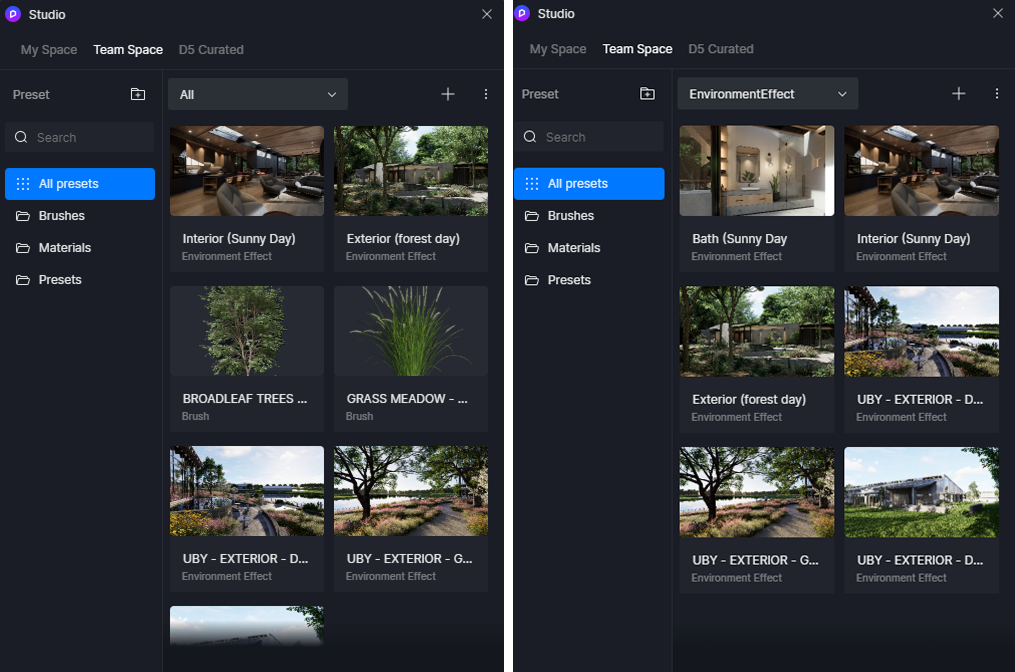 One of AODK’s biggest wins is project and asset consistency. The Teams license lets them centralize their materials, vegetation, lighting, and camera presets, creating a shared visual language that reflects the studio’s design identity.