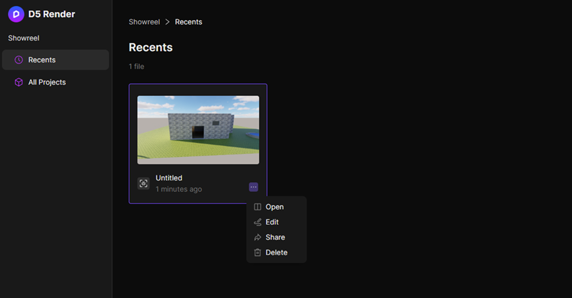 Now directly accessible from the sidebar, D5 Showreel serves as the central gallery for your interactive presentations.