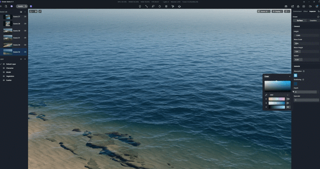 Staying organized is key to improving efficiency. Group your scene elements into clear layers (terrain, vegetation, lighting, architecture) and use D5 Render's scene folders to streamline the process. Additionally, saving your favorite brushes and scattering tools in the Local Library allows for quick reuse across projects, minimizing repetitive tasks and speeding up your workflow.