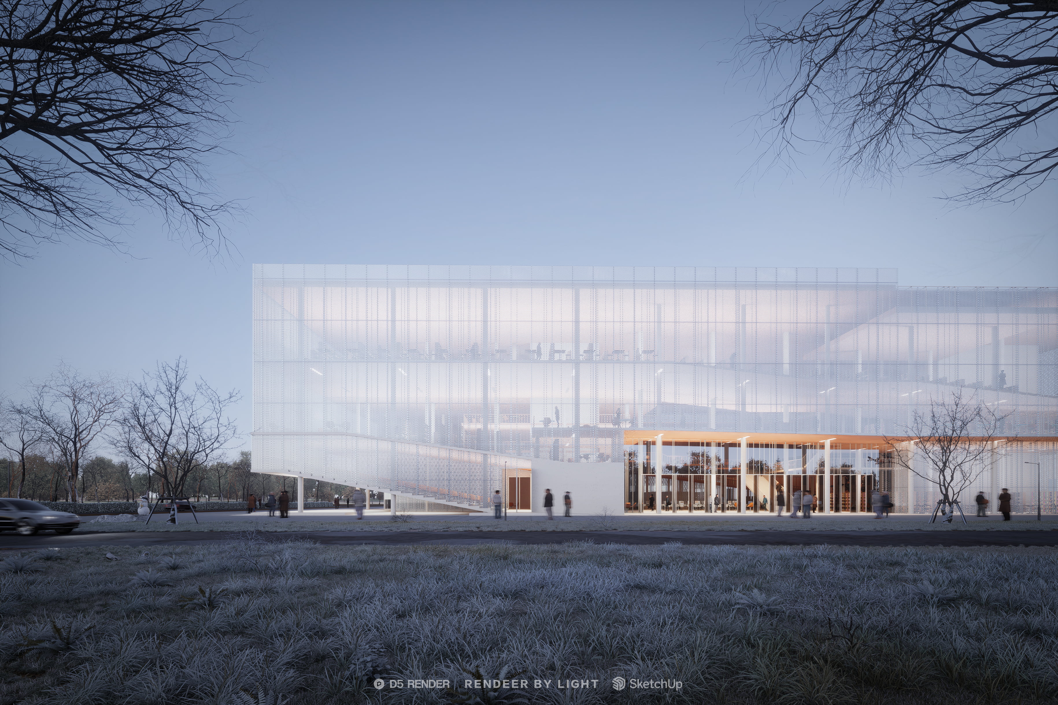 For architectural visualization, environment setting is critical because it directly tells your audiences the story of the architecture. It includes sky, weather, surrounding landscape, backdrop context and many other elements. How they interact can greatly impact the realism and quality of the final render. For example, the glass facade usually reflects the surroundings. You don't need to spend hours placing buildings around to have such a beautiful reflection. All you need is a backdrop plane from D5 Asset Library.