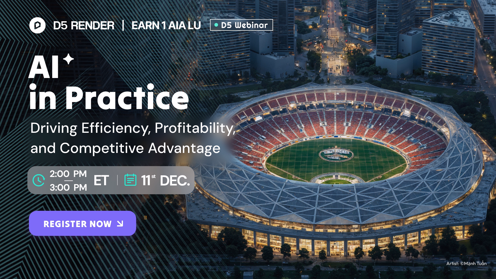 Join this session to explore BIG's AI-powered workflow with D5 Render and gain exclusive insights into design technology trends.